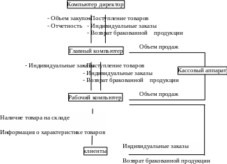 Учет товаров ведется с помощью 2‑х компьютеров, которые соединены в одну систему. С помощью складского компьютера, ведется учет прихода и расхода товаров, а обработанные данные передаются остальным участникам сети. Также будет вестись учет товара в магазине. В конце каждой недели достаточно будет выводить остатки и проверять наличие товара в магазине и на складе с данными, которые выдает компьютер. Продавцы должны заносить данные о приходе по товару который находится в магазине, заносить расход и выводить остатки, также пользоваться данной системой при обслуживании покупателей.