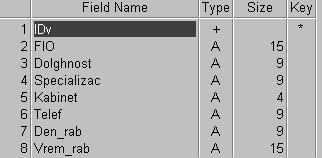 Рисунок 5 – Физическая модель таблицы «Врачи»
