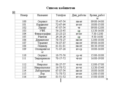 Операции добавление, редактирование, поиск и удаление врачей работают аналогично операциям добавление, редактирование, поиск и удаление кабинетов.