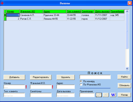 С главной формой также связана форма «Вызовы», в которой осуществляются такие же действия, как и в форме «Кабинеты».