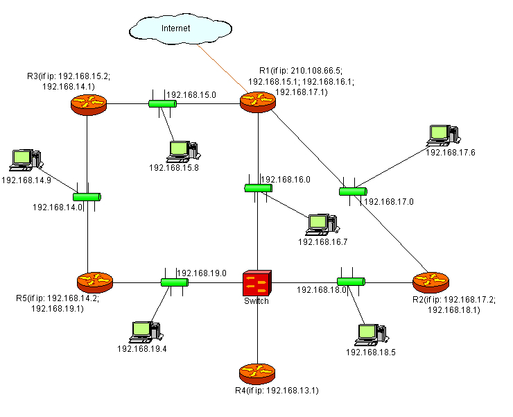 | 192.168.18.0 | 255.255.255.0 | 192.168.13.1 | 192.168.16.1 | 1 |