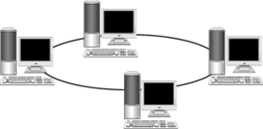 Топология «Кольцо» активная топология. Все компьютеры в сети связаны по замкнутому кругу (рисунок 1.3). Прокладка кабелей между рабочими станциями может оказаться довольно сложной и дорогостоящей, если они расположены не по кольцу, а, например, в линию. В качестве носителя в сети используется витая пара или оптоволокно. Сообщения циркулируют по кругу. Рабочая станция может передавать информацию другой рабочей станции только после того, как получит право на передачу (маркер), поэтому коллизии исключены. Информация передается по кольцу от одной рабочей станции к другой, поэтому при выходе из строя одного компьютера, если не принимать специальных мер выйдет из строя вся сеть.