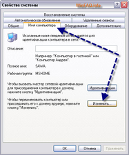 После того, как IP-адреса и маски подсети заданы на всех компьютерах, нам необходимо присвоить каждому из них уникальное имя и единую рабочую группу. Это достаточно просто и быстро. Для этого нам необходимо отыскать на рабочем столе значок Мой компьютер и зайти в его Свойства, кликнув по нему правой клавишей мыши и выбрав соответствующий пункт в появившемся контекстом меню. В открывшемся окне перейдите во вкладку Имя компьютера.