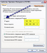 Первое поле IP-адрес должно указать системе виртуальный сетевой адрес компьютера (это как ваш домашний адрес в компьютерном мире), вводим следующие значения: 192.168.1.* - где * является любым целым числом от 1 до 255. Удобно задавать данные значения по порядку, чтобы в будущем не путаться с адресами компьютеров в офисе или дома.