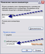 В поле ввода имени компьютера задайте уникальное желаемое имя, например PK1 или OFFICE4. Ниже можете увидеть два поля, из которых нас интересует лишь второе рабочая группа: задаем единое для всех компьютеров, подключенных в сеть, имя, например MYGROUP. Сохраняем все изменения и перезагружаем каждый компьютер. Наша локальная сеть настроена, необходимо ее проверить.