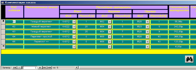 Используются таблицы: Комплектацию заказов, Клей, Картон, Пружина.