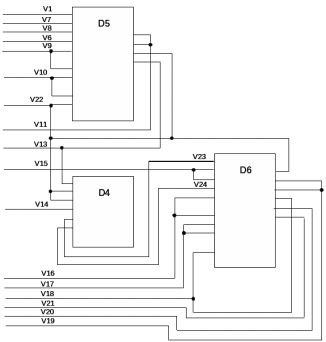 Після перенесення провідників V11, V18, V22, V23 на другий шар отримаємо двошаровий розподіл сполучень схеми.