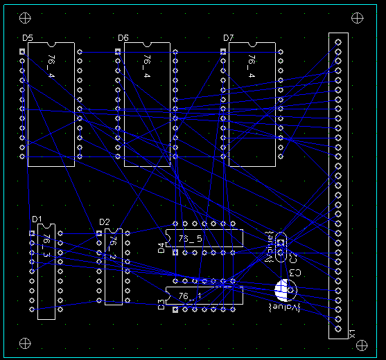 Після натиснення на кнопку Yes завантажувані компоненти проекту розміщуються над верхньою межею друкарської плати (якщо вже розміщена заготівка друкарської плат). Якщо ж немає заготівки, то всі компоненти розміщуються в лівому нижньому кутку робочого простору проекту. При цьому на екрані відображаються прямі лінії ще не проведених електричних зв'язків.