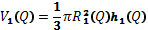 Формули для знаходження радіусу R, висоти h та обсягу V великої заготівлі: