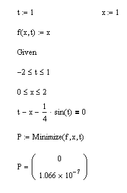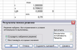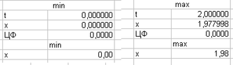Результат: мінімум дорівнює t= 1,066*10-7; x=0; максимум t=1; x=0,79.