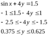 Знайдемо точку перетину y й x. Так як sin перебуває у проміжку від -1 до 1, то можна скласти наступні нерівності: