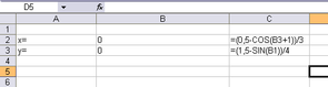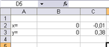 Далі для знаходження точного рішення необхідно заповнити таблицю з вихідними даними й розрахунковими формулами. Задаємо початкові значення х и y рівні 0.