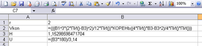 Заповнюємо таблицю з вихідними даними й розрахунковими формулами: