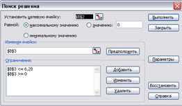 Спочатку ми задаємо цільову функцію, потім визначаємо для неї обмеження, вибираємо змінні та, задавши перші наближення для змінних, виконаємо «Пошук рішення».