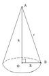 У конусі отримали прямокутний трикутник АОВ, де h – катет. Для знаходження катетів обчислимо корінь із різниці гіпотенузи r та катету R.