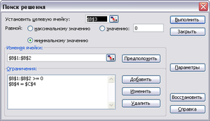 Заповнюємо вікно «Пошук рішення»: