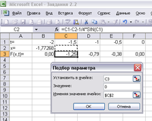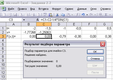 Отримане значення х необхідно перенести в наступний осередок і по цьому значенню х зробити підбор параметра.