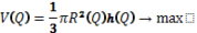 В якості цільової функції виберемо рівняння об'єму конуса умови незаперечності змінних величин; кут Q не повинен перевищувати 2 ПІ.