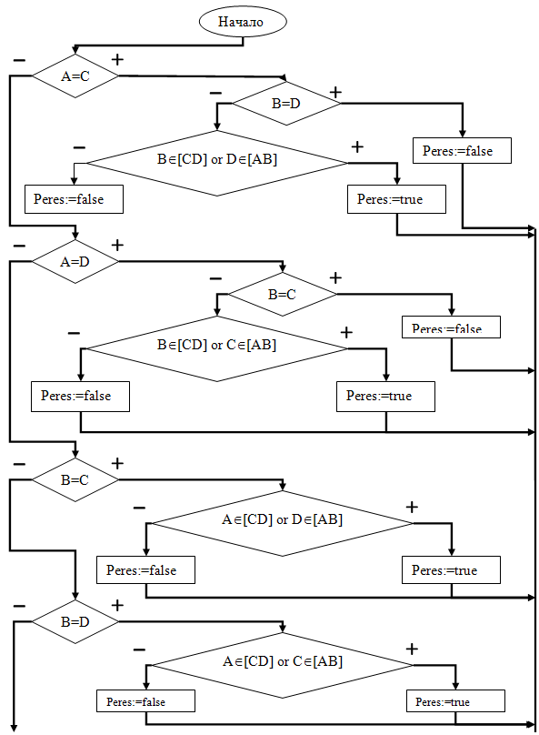 Истина если отрезки [AB] и [CD] имеют общие точки за исключением случаев: