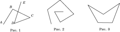 Фигура, образованная конечным набором отрезков, расположенных так, что конец первого является началом второго, конец второго – началом третьего и т.д., называется ломаной линией или просто ломаной (рис. 1). Отрезки называются сторонами ломаной, а их концы – вершинами ломаной.