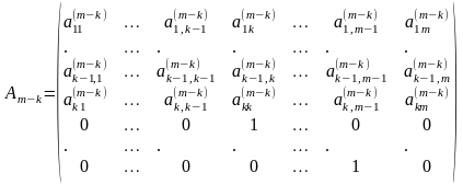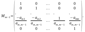 Приведение матрицы А к нормальной форме Фробениуса Р осуществляется последовательно построкам, начиная с последней строки.