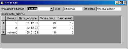 Сумма_оплаченная – переход к выбранному читателю из возможных