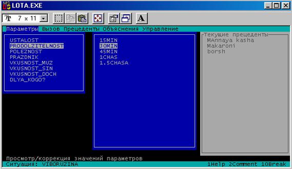 Смысл работы такой программы напомнил мне логику работы недавно изученной среды разработки ИИС Lota+. Ее «программы» основаны на том же принципе – накопление опыта путем первичного обучения и записи результатов в файл. Дальнейшее использование представляет собой выбор параметров из представленного меню и получения в конце некоторого результата.