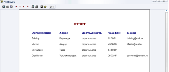 В меню Action есть команда Show report, после нажатия которой появится окно отчета по запросу (Рисунок 6). Отчет будет содержать информацию запроса, который выбран в списке запросов. Команда Show report доступна не всегда. Отчет предоставляется лишь следующим запросам: