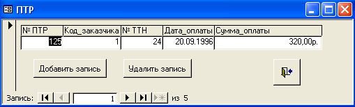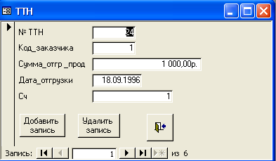 Из рисунка видно, что заказчику 4 (магазин «Лига») 21 ноября 1996 года было отгружено 200 единиц изделия с кодом 001, а оплачено было 75. Соответственно, недоплату по данному изделию можно найти: