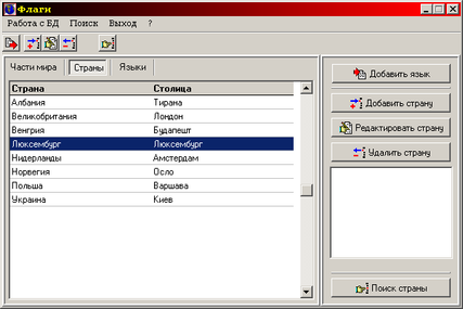 — Удалить страну – удаляет ненужные записи из таблицы стран.