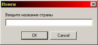 После того как появилось диалоговое окно надо ввести название страны, причём название должно быть полностью идентичное находящемуся в таблице (к примеру страна «украина» не будет найдена в отличии от «Украина») . Когда поле заполнено следует нажать кнопку “OK”.