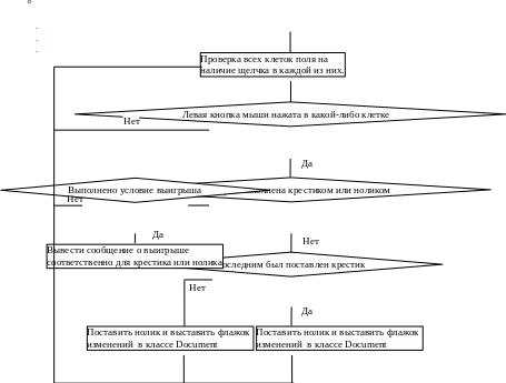 Далее следует рассказать о блоке, отвечающем за рисование крестиков и ноликов после щелчков мыши на клетках поля.