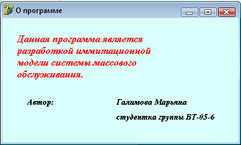 Команда "О программе" позволяет посмотреть информацию о программе и авторе программы (Рисунок 3.8).