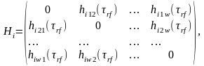 В каждом узле железнодорожной сети происходят процессы формирования-расформирования составов. Длительность этих процессов, как правило, носит вероятностный характер и описывается функциями распределения. Функции распределения для каждого i-ого узла сети задаются матрицей , где каждый элемент матрицы есть функция распределения времени на формирование-расформирование в i-ом узле для состава, пришедшего с узла k и следующего в узел j. Матрица имеет вид:
