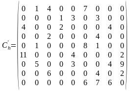Для поиска узких мест в Gh с начальным пунктом Z и конечным пунктом Y проведём покомпонентное вычитание из этой матрицы соответствующих значений матрицы пропускных способностей Сh::