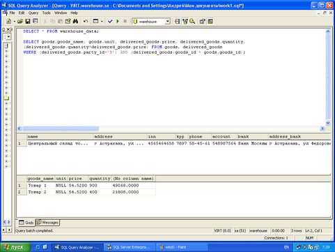 Здесь происходит выборка данных о товаре, вошедшем в проданную партию, аналогично запросу выборки данных о товарах, прибывших в составе партии товара, описанному выше.