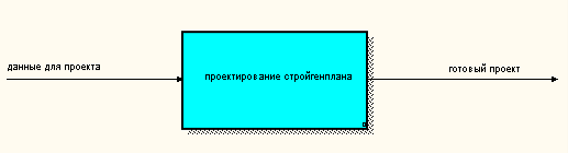 Контекстная диаграмма представляет собой схему управления отделами стройгенплана. Управляющим воздействием являются нормативные акты и приказы; входные данные – данные для проекта(запросов и отчетов), они вводятся пользователем. Результатом функционирования являются различные отчеты.