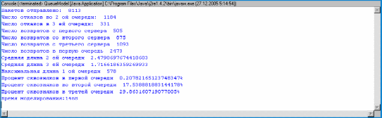 System.out.println("Число отказов в 3 ей очереди: " +Queue3.numOfRej);