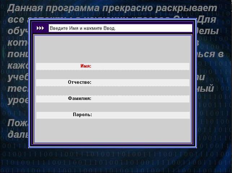 Если введенные данные найдены в базе данных, система считает, что пользователь существует и запрашивает пароль (Рис.4). В случае правильно введенного пароля система переходит в режим предоставления материала. Если пользователь три раза введет пароль неверно, то система завершит работу.