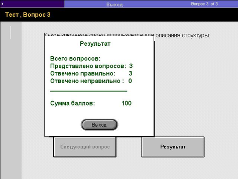 Рис. 6. Окно вывода результата тестирования