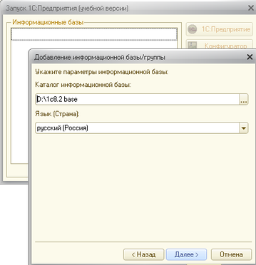 Итак, создание любой программы 1С:Предприятия начинается с создания информационной базы, в которой будет находиться и сама "программа" и данные, с которыми она работает.