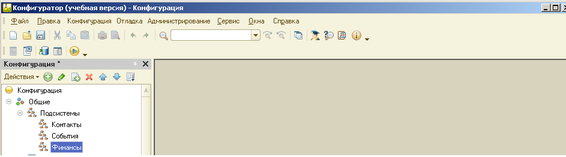 Сейчас это дерево "пустое", оно содержит только ветки верхнего уровня, которые есть в любой информационной базе 1С:Предприятия.