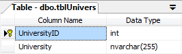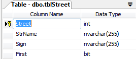 Таблица открывается в режиме Конструктора в котором мы можем задать название и тип полей. Также здесь мы можем создать ключевое поле, для этого щелкнуть правой кнопкой на нужное поле и выбрать «Set primary key»