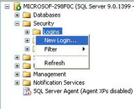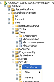 Для создания логинов необходимо в Object Explorer найти вкладку «Security», раскрыть её, щелкнуть правой кнопкой мыши по вкладке «Logins» и нажимаем «New Login»: