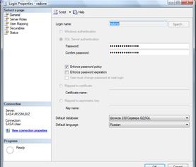 Создадим два логина. Первый будет для администратора, со всеми правами к нашей базе данных, второй для обычный пользователь с ограниченным набором прав.