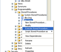 Хранимые процедуры можно выполнять с помощью инструкции Transact-SQL EXECUTE. Хранимые процедуры отличаются от функций тем, что они не возвращают значения на месте своих имен, и их нельзя непосредственно использовать в выражениях.
