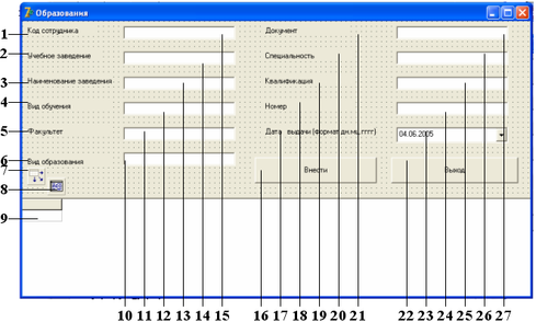 | 27 | DBEdit4 | Data Field - Военно-учетная специальность номер; Data Sourse - DataSource1 | Data Sourse - DataSource1 |