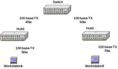 Сегмент кабеля 100Вase-TХ: 40 * 1,1 = 44 bt.