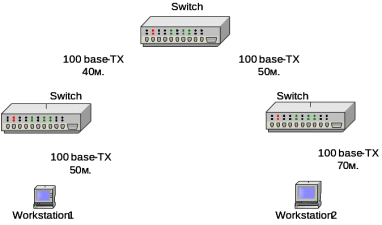 Сегмент кабеля 100Вase-TХ: 50 * 1,1 = 55 bt.