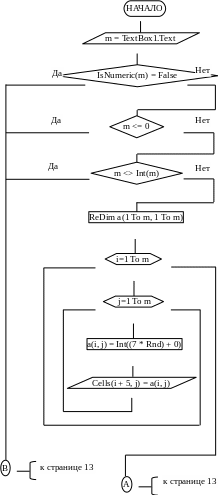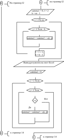 12 – цикл, который пробегает значения столбцов от 1 до m-b, с шагом равным по умолчанию 1;